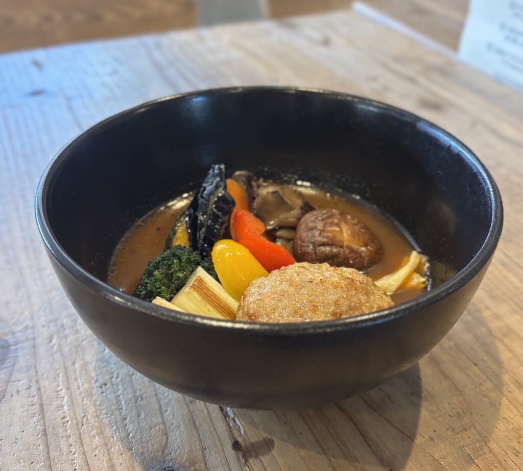 鶏つくねと木の子、8種野菜の芳醇スープカリーです。